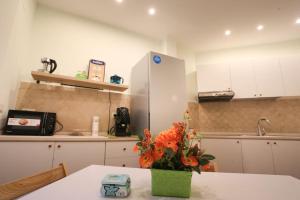 Tento dobře vybavený apartmán nabízí pět lůžek ve čtyřech ložnicích, což poskytuje dostatek prostoru pro hosty. Plně vybavená kuchyň má varnou desku, lednici, mikrovlnnou troubu, kávovar, rychlovarnou konvici i kuchyňské náčiní a možnost přípravy čaje či kávy. Další zařízení zahrnují klimatizaci, vytápění, pračku se sušičkou na oblečení, podlahy z dlaždic či mramoru, posezení, pracovní stůl a šatní skříň. K dispozici jsou také ložní prádlo a ručníky.