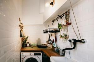 L’appartamento climatizzato comprende una camera da letto con due letti singoli, un soggiorno arredato con divano letto e zona salotto, oltre a un angolo cottura completamente attrezzato con piano cottura, frigorifero, microonde, tostapane, macchina per il caffè, bollitore elettrico, utensili da cucina e tavolo da pranzo. Tra i comfort aggiuntivi vi sono riscaldamento con aria condizionata regolabile singolarmente nella stanza, biancheria da letto e asciugamani forniti per il comfort degli ospiti, scrivania per lavoro, armadio o guardaroba, lavatrice, asciugatrice, stendibiancheria, culla per bambini, divano, asciugacapelli, presa accanto al letto, adattatore universale, rilevatore di monossido di carbonio, estintore antincendio. I pavimenti sono in piastrelle o marmo ed è presente bidet. Gli articoli da toeletta includono shampoo, balsamo e sapone per il corpo. Il bagno privato dispone di vasca o doccia.