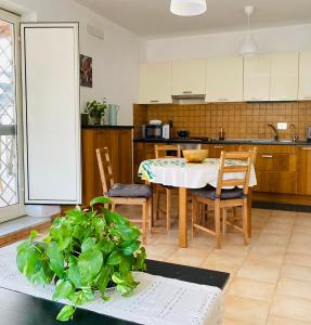 Die Unterkunft bietet zwei Schlafzimmer mit insgesamt drei Betten sowie eine voll ausgestattete Küche mit Kochfeld, Kühlschrank, Geschirrspüler, Backofen und Kochutensilien. Von der Terrasse genießen Gäste Stadtblick und können auf Gartenmöbeln entspannen oder den separaten Außenbereich zum Essen nutzen. Das Badezimmer ist mit Dusche und Bidet ausgestattet.
